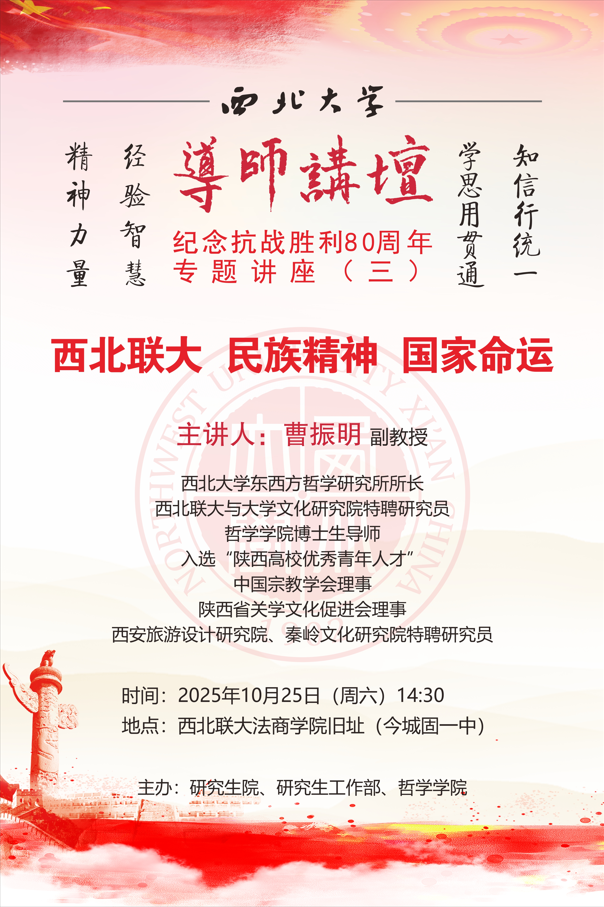 导师讲坛“纪念抗战胜利80周年”专题讲座(三):西北联大•民族精神•国家命运