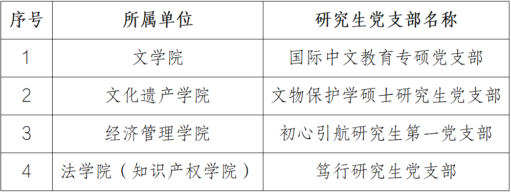 根据《西北大学关于组织开展2025 年“研究生样板党支部”和“研究生党员标兵”培育创建工作的通知》(西大研〔2025〕14号),经各院(系)党委推荐、专家评审、学校审定,拟确定4个研究生党支部为学校2025年研究生样板党支部培育创建对象、10名研究生党员为学校2025年研究生党员标兵培育创建对象。现将名单予以公示: