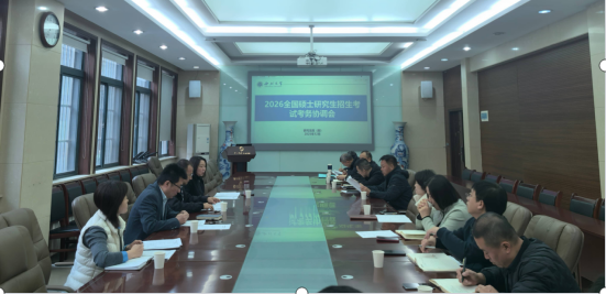 李伟传达了教育部2026年全国研究生招生考试安全工作视频会议、陕西省研究生招生考试安全工作会议及全省研考考务和自命题培训会议的精神。研究生院院长温睿汇报了我校2026年硕士研究生招生考试总体情况,就参会各单位在考务工作中的具体任务分工和工作职责进行了说明。与会各单位负责人结合本部门的具体分工进行了发言,表示将严格按照会议要求,认真落实各项分工任务,通力协作,确保本次研考工作平稳有序。