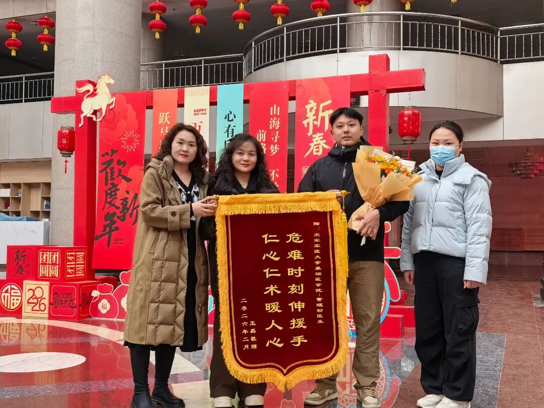日前,我校医学院2023级基础医学专业硕士研究生董理勍收到一面印有“危难时刻伸援手 仁心仁术暖人心”的锦旗。这面锦旗,记录着他春节期间在万米高空挺身而出、紧急施救的感人事迹。