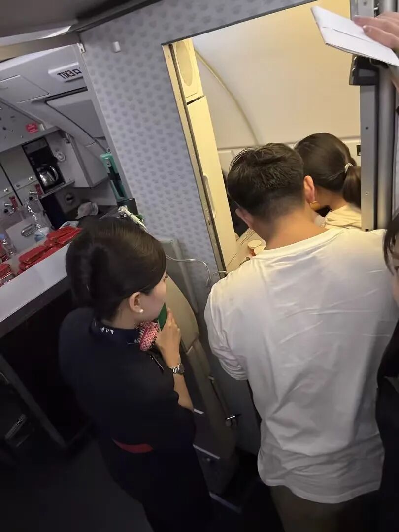 被救治的患者康复后在朋友圈发文致谢,配图是飞机舷窗外的云层,文字中满是感激:“万幸遇到两位素不相识的医者……他们全程站着救我,自己没吃没喝,还要扛颠簸,真心感谢他们的仁心与专业!”